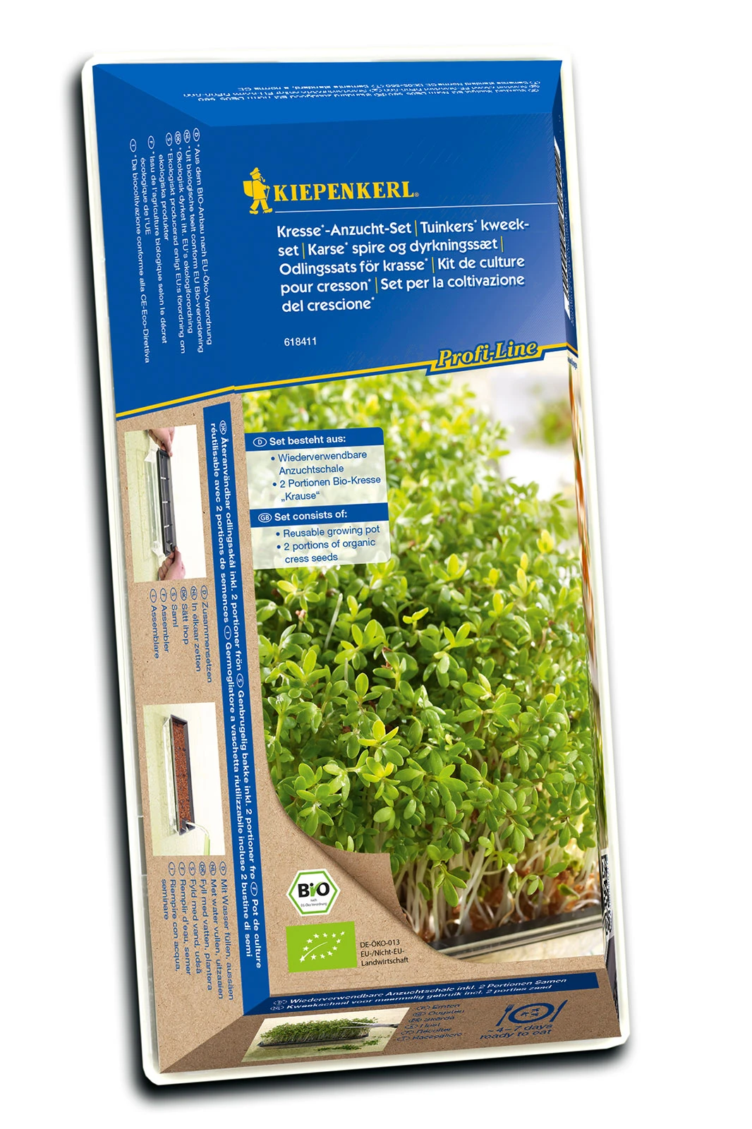 Nichts wächst schneller und ist einfacher mit unserer neuen Schale zu kultivieren als die Kresse. Sie zeichnet sich durch einen hohen Vitamin C-Gehalt aus und ist somit unverzichtbarer Bestandteil der Winterküche, denn Kresse ist eine der besten Vorbeugung gegen Infektionen. Unsere Kresseschale besteht aus einer stabilen Schale mit Anzuchtgitter sowie zwei Portionen unserer Gartenkresse Krause in Bioqualität. Die Kresseschale ist in einer stabilen Box verpackt, die entweder ins Regal gestellt oder in der Saatgutwand aufgehängt werden kann. Die Anzucht ist kinderleicht: Man reiß eine der beiligenden Saatguttüten auf diese entspricht genau einer Anzucht, und schüttet das Saatgut auf das Anzuchtgitter. Nun füllt man vorsichtig Wasser durch die dafür vorgesehene Öffnung in die untere Schale. Das Wasser sollte das Anzuchtgitter berühren. Danach besprühen Sie die Kresse mit Wasser, so dass jeder Samen gut feucht ist. In den nächsten 6 Tagen müssen die Kressesamen gut freucht gehalten und ca. 2x am Tag mit Wasser benetzt werden. Ab dem 6. Tag können sie die Kresse mit einer Schere ernten und genießen. Jeder wird eine spürbare Geschmacks- und Qualitätsverbesserung der selbstgezogenen Kresse im Vergleich zur Kresse aus dem Supermarkt feststellen. Set besteht aus: Kresseschale Anzuchtgitter 2 Portionen Gartenkresse Krause (Bio)