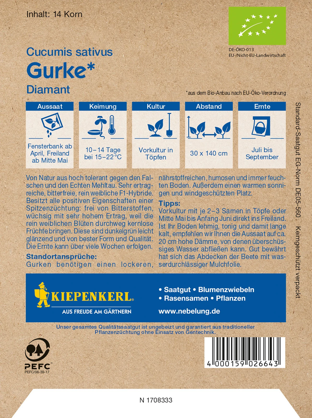 Von Natur aus hoch tolerant gegen den Falschen und den Echten Mehltau. Sehr ertragreiche, bitterfreie, rein weibliche F1-Hybride.