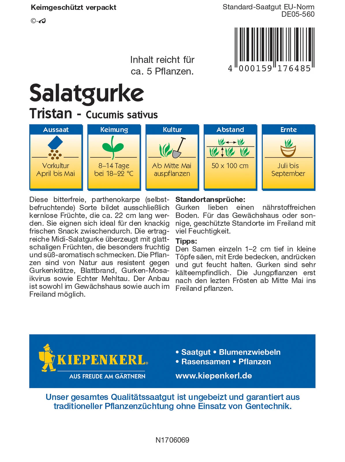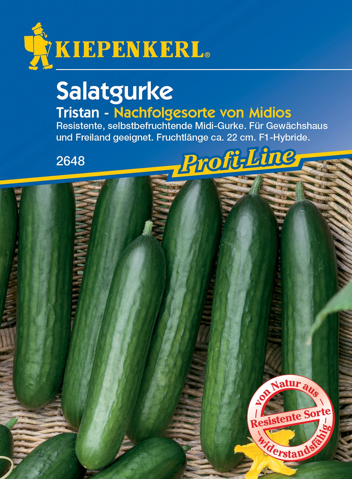 Resistente, selbstbefruchtende Midi-Gurke. Für Gewächshaus und Freiland geeignet. Fruchtlänge ca. 22 cm. F1-Hybride.